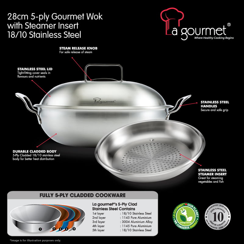 La gourmet Hikaru 26cm x 8.4cm Wok (Induction), 3.2L
