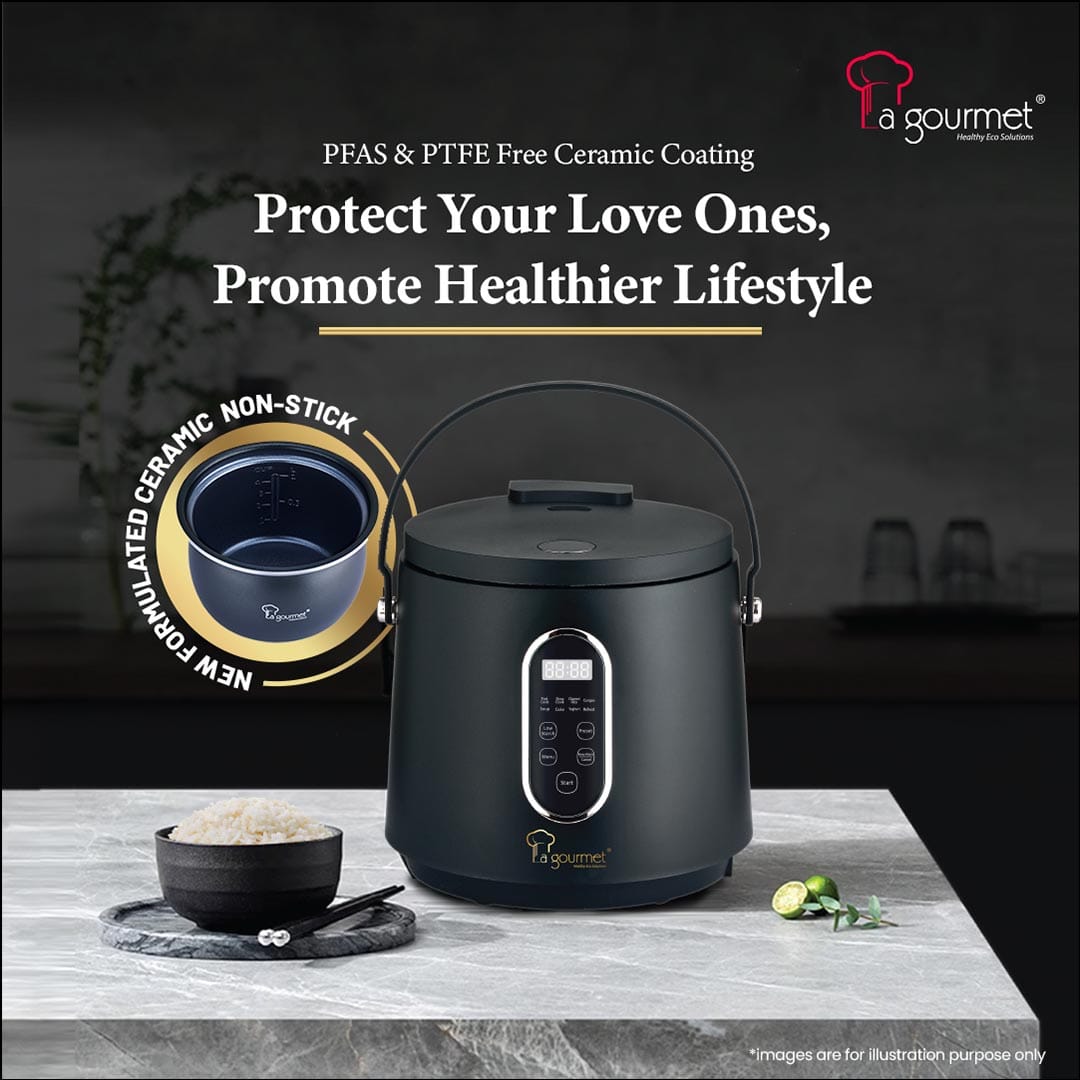 La gourmet 1L Healthy Rice Cooker – Coal BlackNew Ceragan Innovative Ceramic Coating inner pot