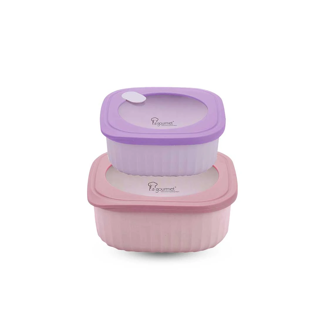 No, PAC2GO are not suitable for the oven/microwave. You may consider our La gourmet Pureglas containers as it is suitable for the oven/microwave.