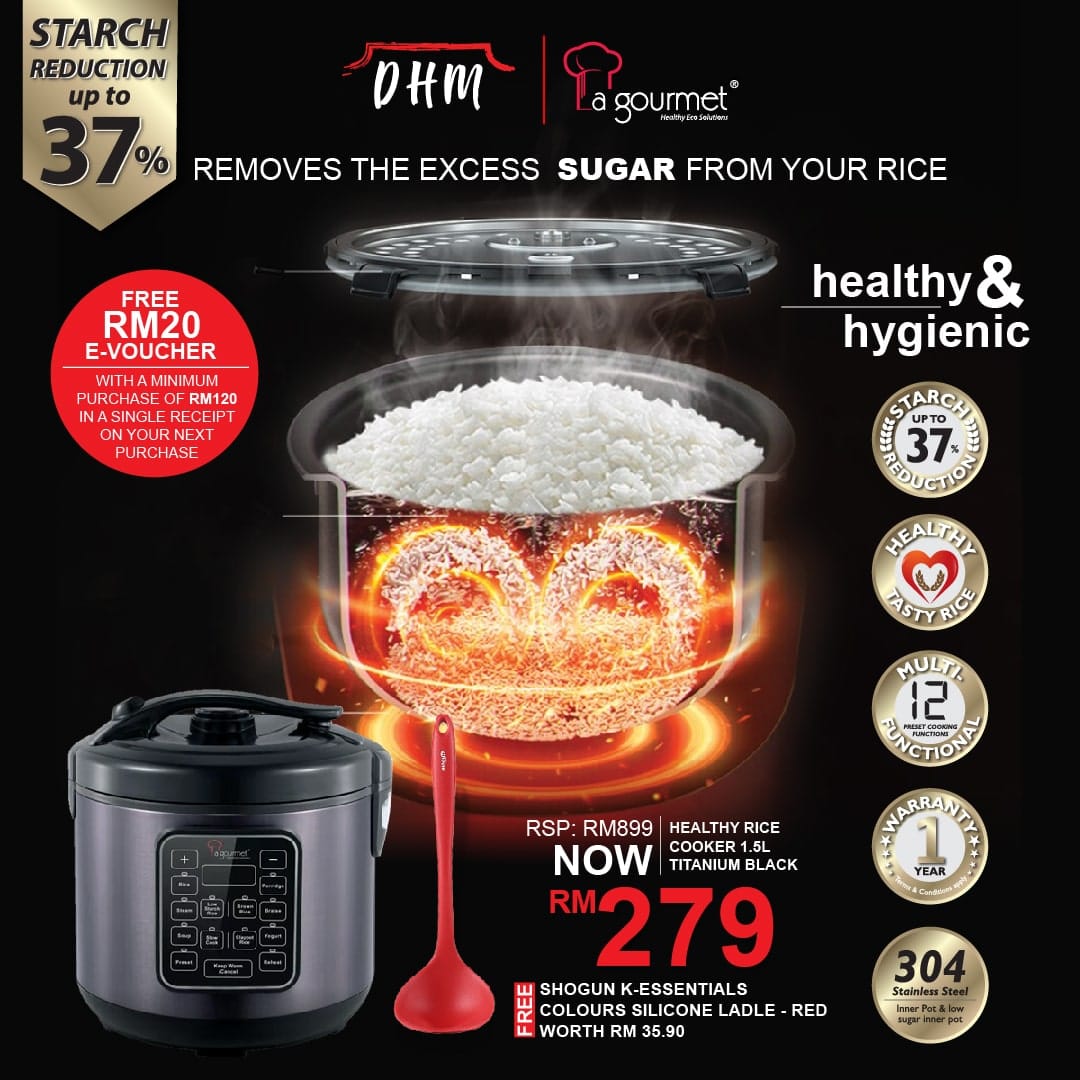 – Advanced 4-stage low starch rice cooking option, that reduces sugar content up to 37%