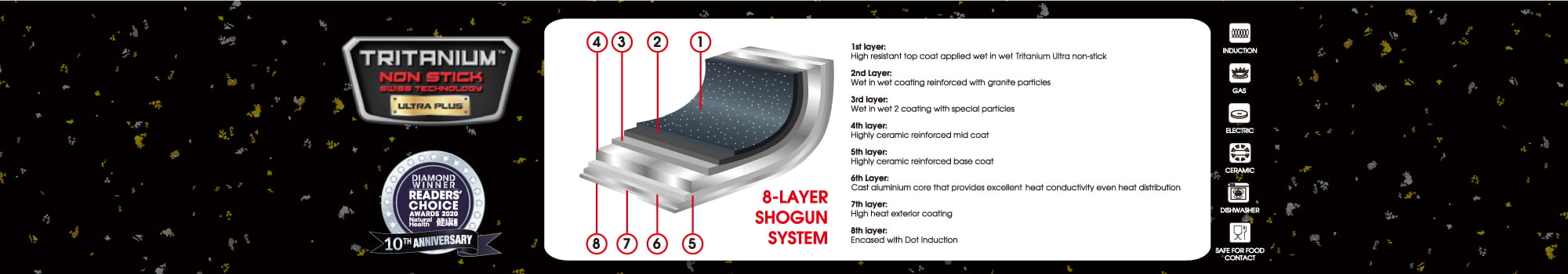 Product Material : Cast Aluminium + Tritanium Ultra Non-Stick Coating from Switzerland