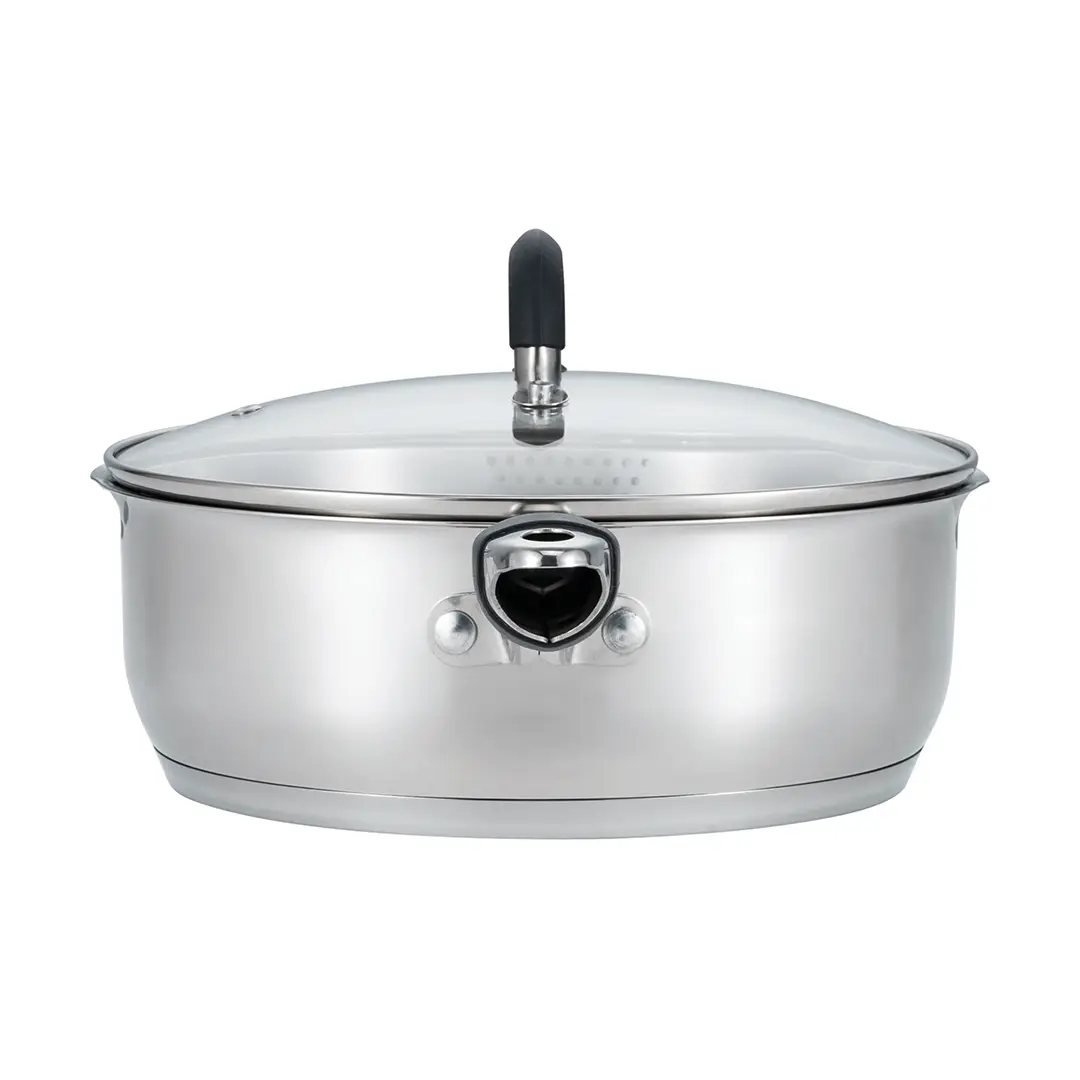 Aura 28cm Deep Frypan with Steamer Insert – 18/10 Stainless Steel 5.2L