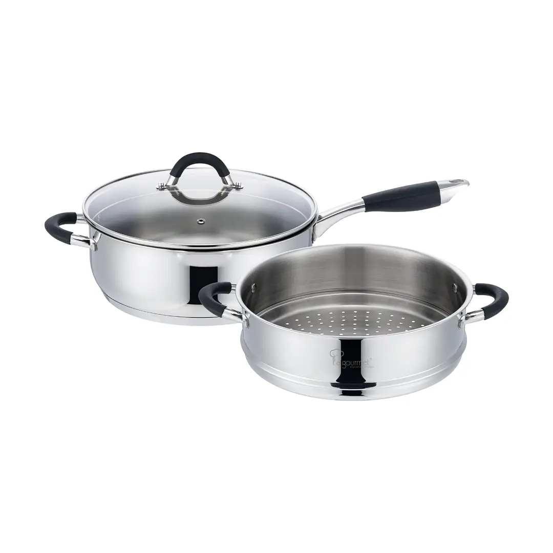 La gourmet Cook & Pour 3pcs set – Senior set (16cm Stainless Steel Saucepan, 20cm Stainless Steel Casserole, 24cm Stainless Steel Casserole) Stainless Steel Cookware