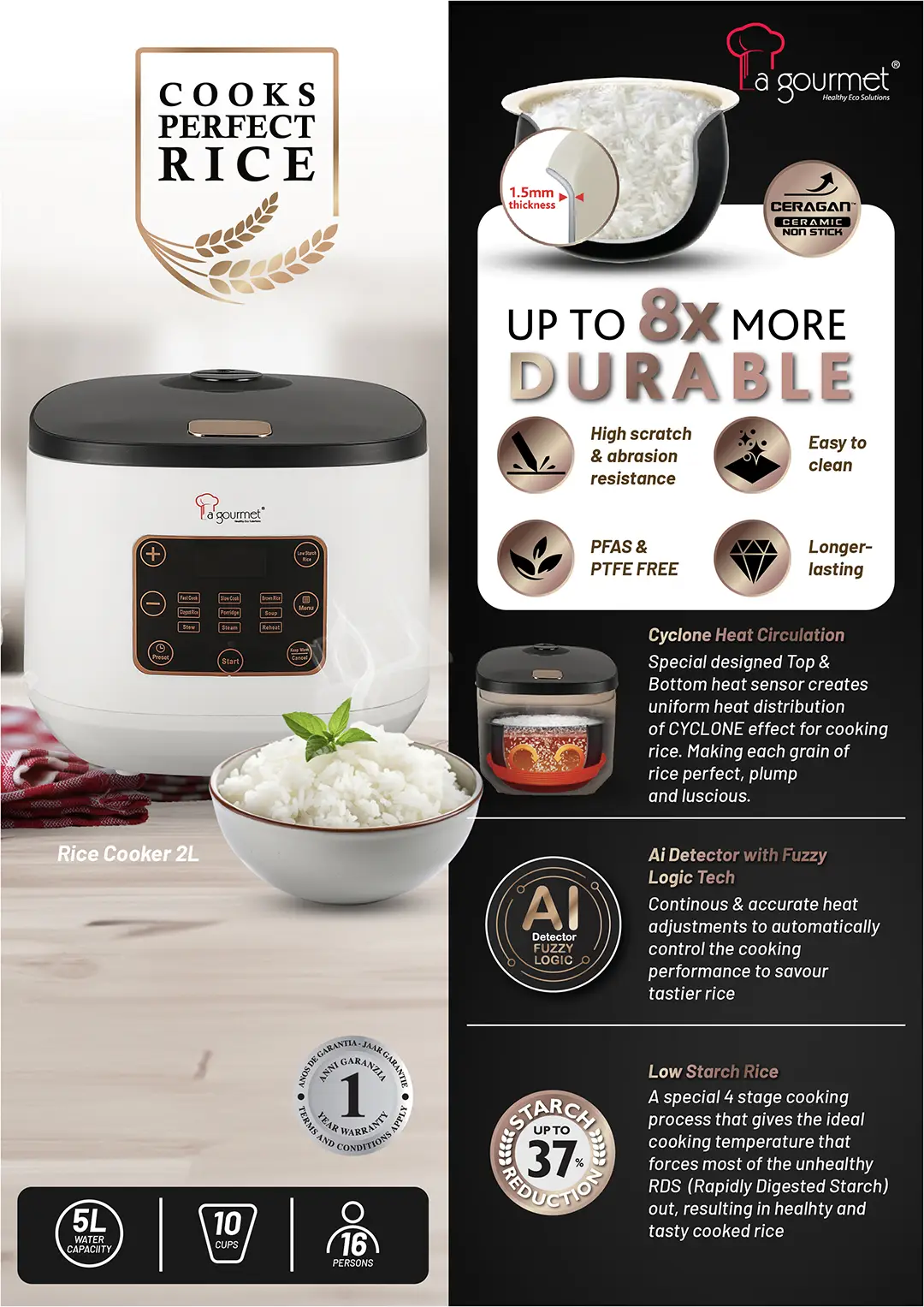– Inner Pot: Tritanium Dura Non-Stick Coating