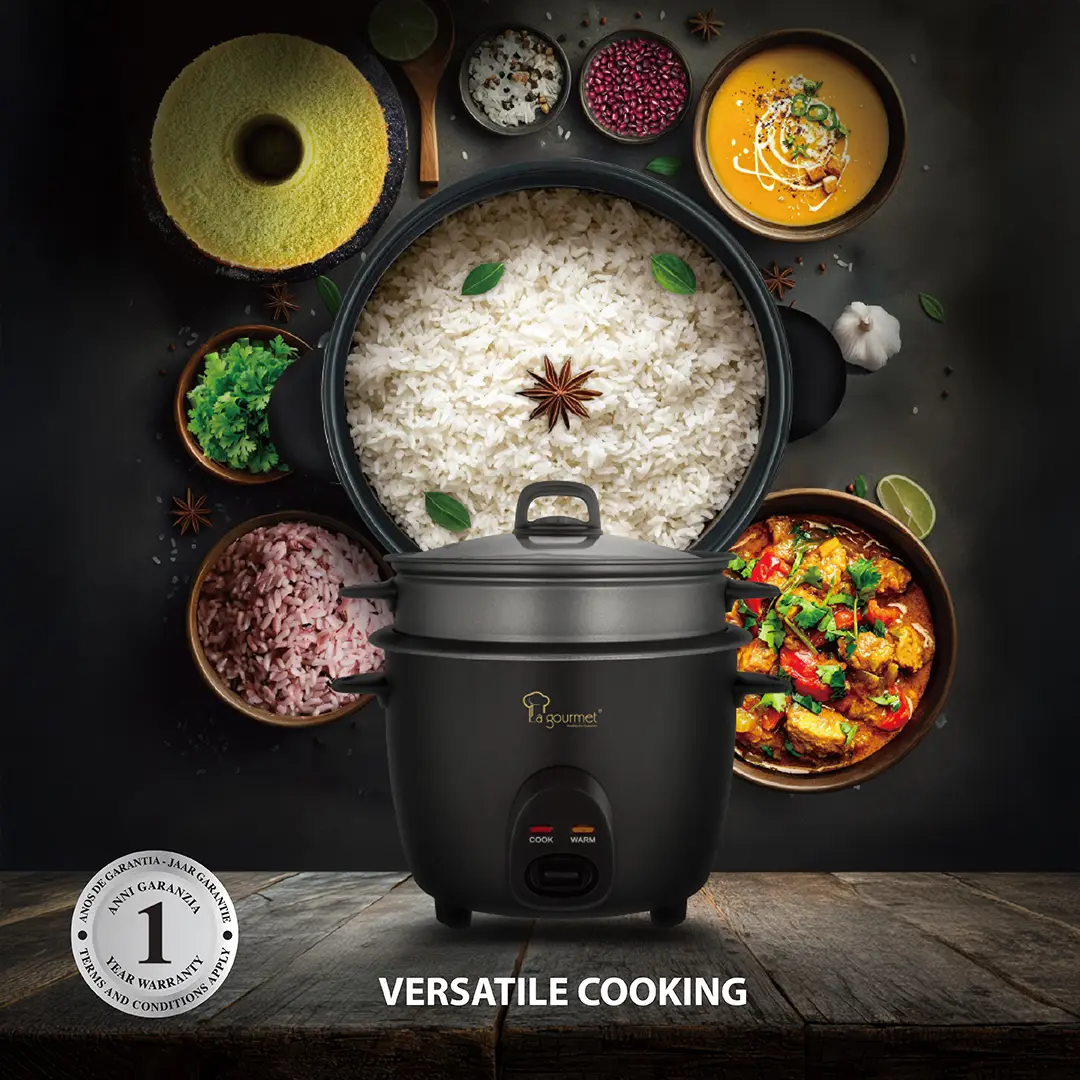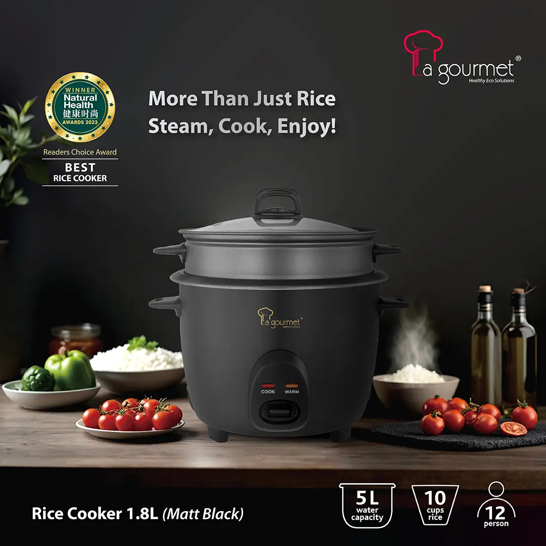 Electric Rice Cooker with Non-stick Steamer – 1.8L Matte Black